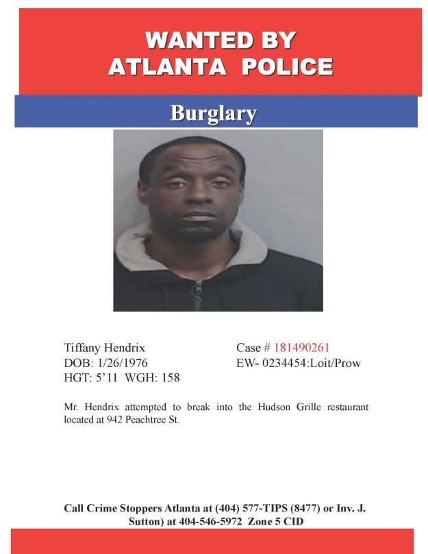 Be on the lookout for Tiffany Hendrix who is wanted for attempting to burglarize Hudson Grill. He has been arrested in Midtown over 66 times. Please call 911 if you…