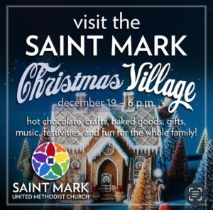 Visit the Saint Mark Christmas Village December 19 at 6 PM. Hot chocolate, crafts, baked goods, gifts, music, festivities, and fun for the whole family!