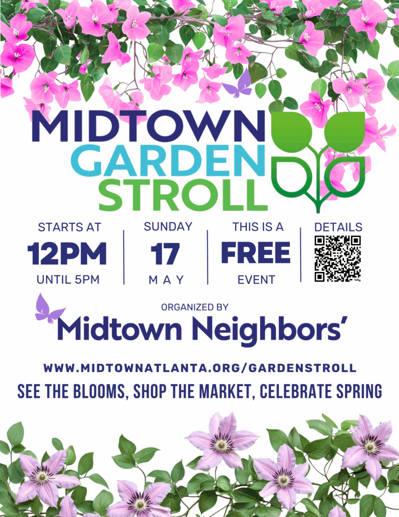 The Midtown Garden Stroll is an outdoor self-guided garden tour, providing a rare opportunity to experience some of Midtown’s most impressive private gardens. Guests can expect to see formal gardens, casual gardens, fountains, espalier, backyard beekeeping, intricate brickwork, and inspiring ideas for beautiful, fully functional family yards. The Midtown Garden Stroll is the only free and largest garden tour in the city! The event also offers a Midtown Garden Stroll Market where local artisans showcase their creations, live musicians play and you can grab a tasty bite or cool drink from Atlanta-based restauranteurs.